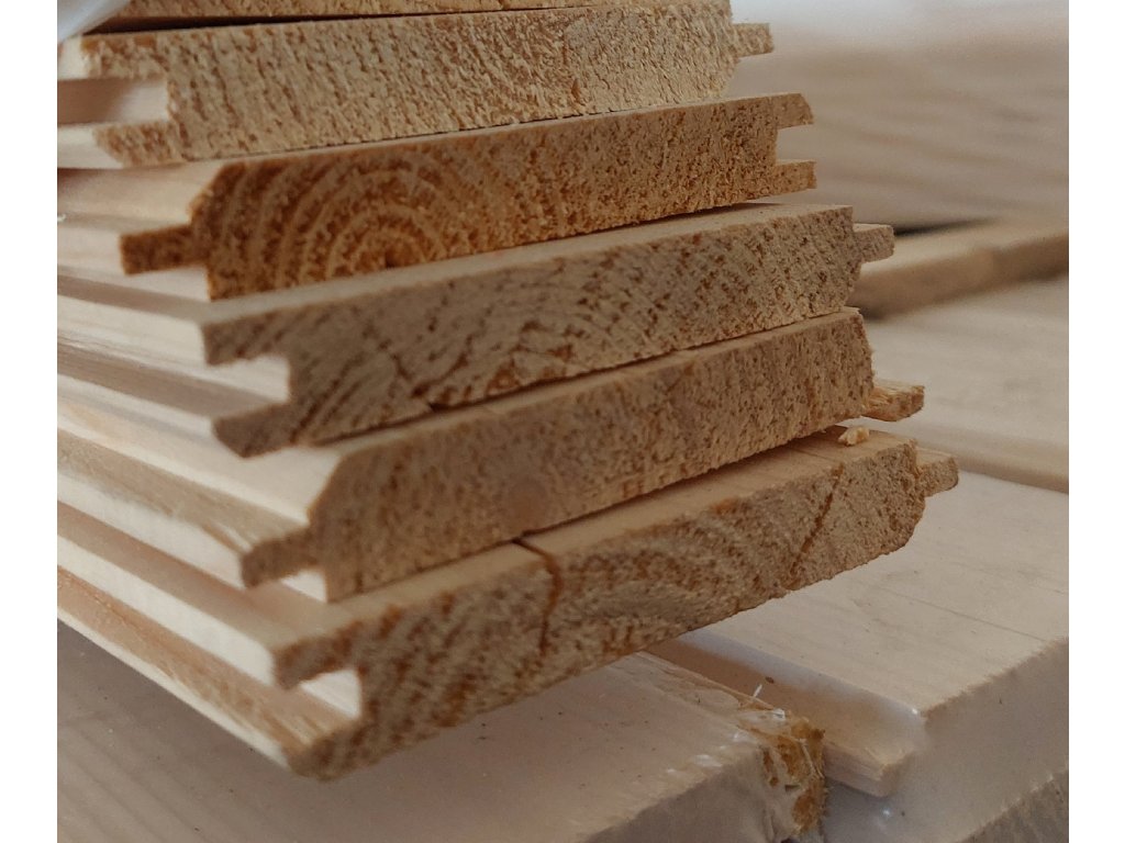 Obkladové palubky o síle 12,5 mm. Profil klasik, oboustranně hladké, na podelných stranách mají pero a drážku.