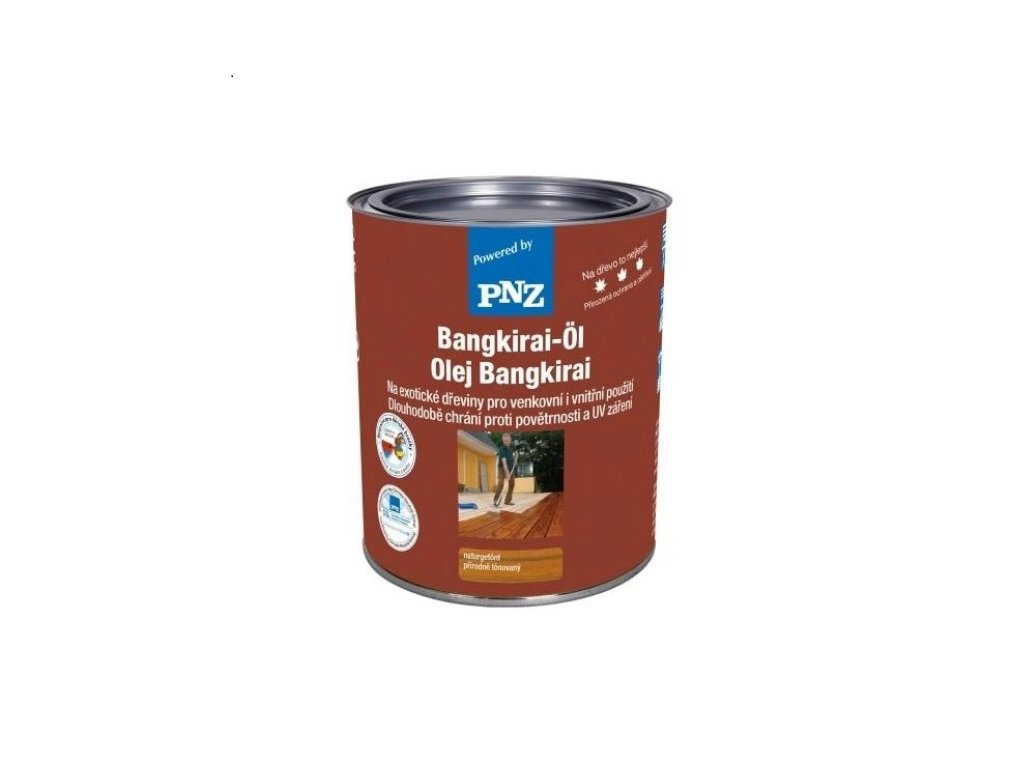 Bangkirai Öl - ošetřovací a ochranný prostředek vhodný k ošetření dřeva v zahradách jako např. podlahy teras, obložení a zahradní nábytek. Vhodný pro exotické dřeviny jako např: bangkirai, iroko, mahagon, meranti, nyatoh, robble, jarrah, belinga, douglasie, robinie, dub, modřín, cedr a další. Vyroben z přírodních olejů. Neobsahuje zdraví škodlivé látky, vytváří sametově matnou plochu.