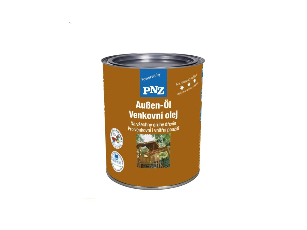 Barevný PNZ Venkovní olej je vyráběn podle staletých receptur a používá se především v exteriéru. Nátěr netvoří souvislý film a poskytuje ochranu před extrémními povětrnostními vlivy. Na rozdíl od nátěrů tvořících souvislou vrstvu, se PNZ Venkovní olej usazuje pevně v kapilárách dřeva a poskytuje tak dřevu přírodní ochranu, odolnou povětrnostním vlivům, vodě a UV záření. Zabraňuje bobtnání, vysychání a praskání dřeva. Není zařazen do žádné třídy nebezpečnosti (DIN 53160/EN 71).